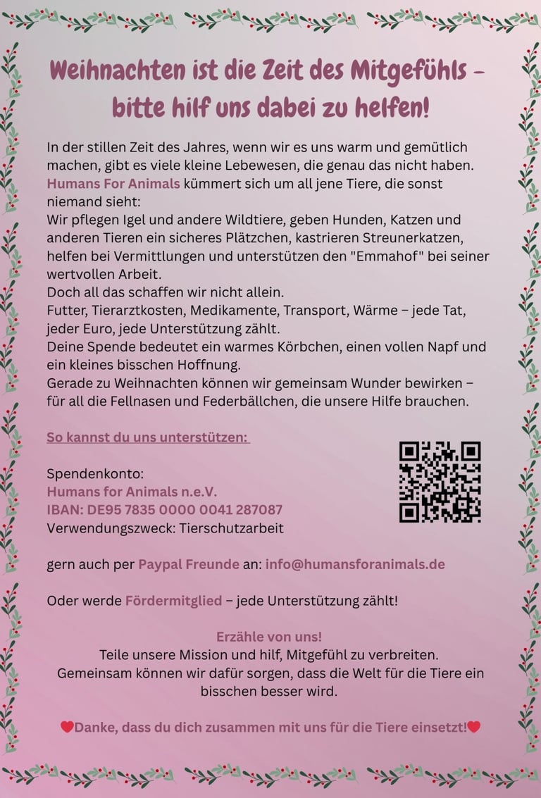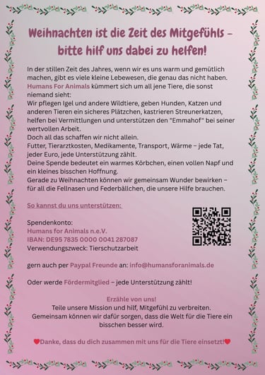 Tiere haben ein Recht auf Freiheit, Unversehrtheit, Selbstbestimmung und den Schutz ihrer Familie - kurz gesagt: auf ihr LEBEN.