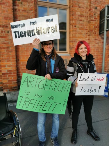Um darauf aufmerksam zu machen, organisieren wir Demos, wenn sich ein Zirkus mit Tieren ankündigt. Denn Tiere sind keine Unterhaltung! Wir möchten den Menschen zeigen, dass Zirkus auch ohne Tierquälerei möglich ist. Dafür gibt es inzwischen viele gute Beispiele, die in modernen Shows ihr Publikum mit Menschen begeistern, nicht mit Dressur.